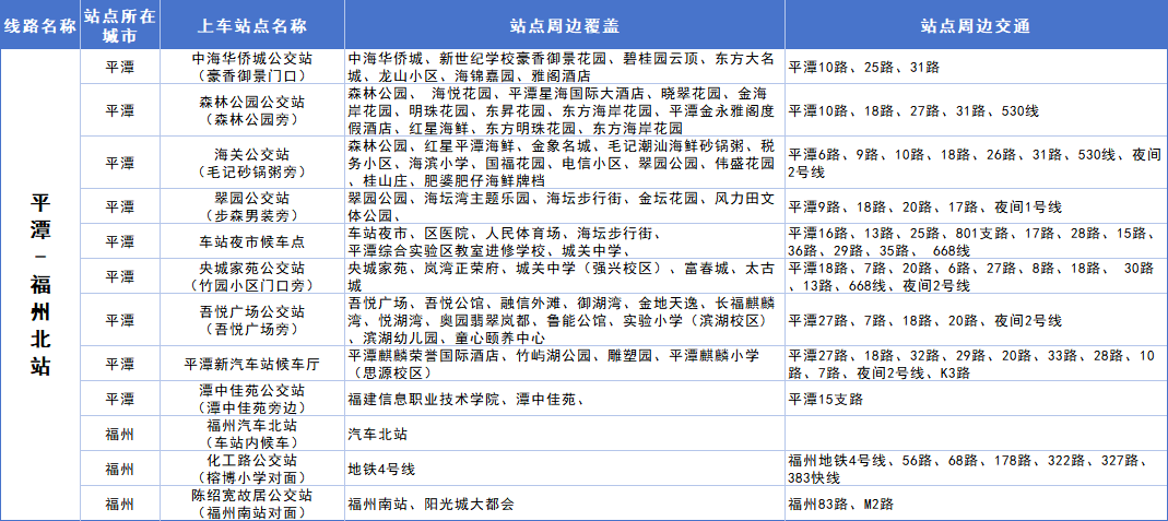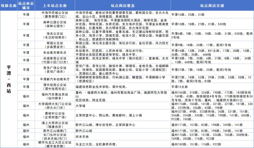 途經(jīng):中海華僑城、森林公園、海關(guān)、翠園、車站夜市候車點(diǎn)、央城家苑、吾悅廣場、平潭新汽車站候車廳、潭中佳苑、福州汽車客運(yùn)西站、大學(xué)城師大東門、葛岐村、浦上大橋西、群升江山城南門、長門頭村、順華烏龍江大區(qū)。