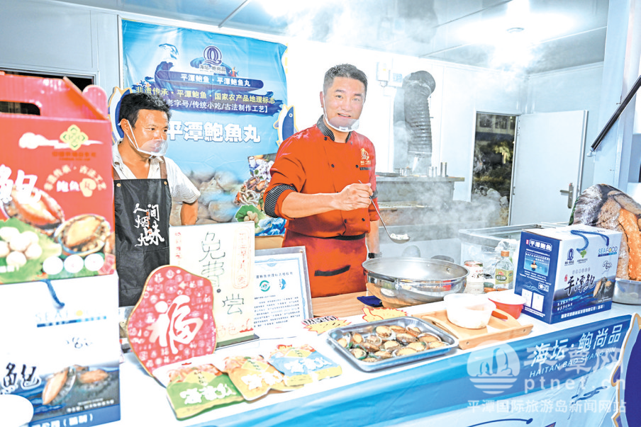 “鮮凝一丸,一口嘗盡大海精華……”跟隨吆喝聲,在平潭鮑魚丸攤位前,不少游客駐足品嘗由平潭鮑魚做成的鮑魚丸,咬一口,口感彈嫩,醇厚扎實,鮮味滿溢。