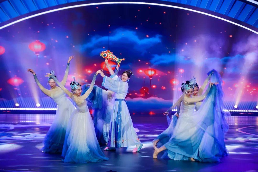第三輪“跟著詩詞游中國”里,第二十二屆“漢語橋”世界大學生中文比賽優(yōu)秀網(wǎng)絡人氣獎選手貝庭笙擔任串講人,五位選手融合古詩詞表演個人才藝,評委從藝術表現(xiàn)、技術技巧評判。