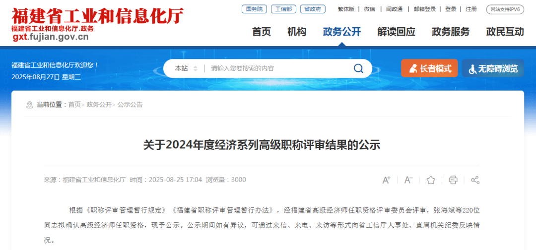 2025-08-27 22:22:38 來(lái)源:平潭網(wǎng)綜合福建省工信廳平潭網(wǎng)8月27日訊 近日,福建省工業(yè)和信息化廳對(duì)2024年度經(jīng)濟(jì)系列高級(jí)職稱評(píng)審結(jié)果予以公示,其中,平潭綜合實(shí)驗(yàn)區(qū)財(cái)政金融事務(wù)服務(wù)中心張穎、平潭自由貿(mào)易區(qū)兩岸發(fā)展有限公司林佳琴、平潭綜合實(shí)驗(yàn)區(qū)城市發(fā)展集團(tuán)有限公司劉儉鳳在列。